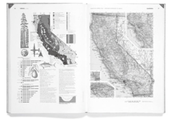 バー ト・バイヤーの普遍的な世界地理地図」 を、継承して、講談社の現代世界百科大事典のヴィジュアリティの構造をデザインされています。寺山祐策先生にいわせれば、 「ハー バー ト・バイヤーの正当な継承者だ」といいます。原弘先生がチヒョルトを翻訳し、ヴィジュアルを見るのではなくて、デザインの背後にどういう仕組みがあるのかを読み込んだのと同じように、勝井先生はハー バー ト・バイヤーのデザインのシステムを読み込まれたと思います。