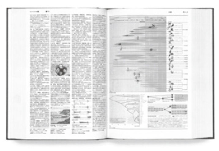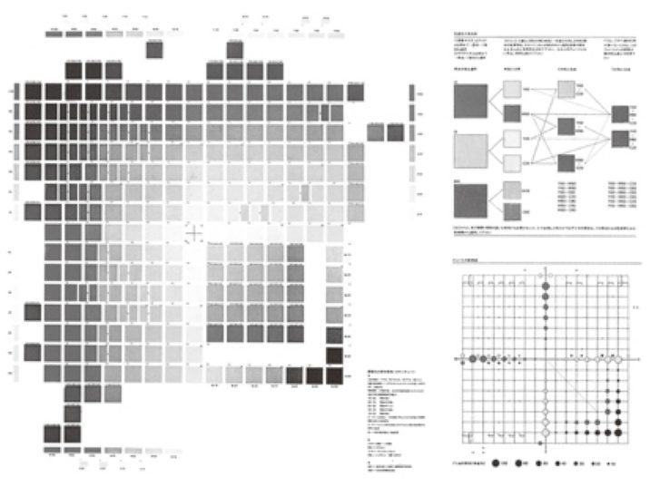 私が現代世界百科大事典を作った時代は、百科事典を出版することが一流の出版社の証でした。大手では平凡社が作っていました。しかし、それぞれの作り方は非常に日本的な作り方でした。講談社で初めての百科事典を作るというからには、何かトータルにエディトリアルの神髄を究めたものにしていきたいと川添登さんと考えました。その当時、ちょうどラルースというフランスの百科事典が三巻本で出ました。カラー化された時代の初めての出版物でした。それまで日本の百科事典はモノクロでしたので、カラーで刷るからにはカラー機能を本に入れていくことになります。「情報を美しく、解り易く伝える」をコンセプトにカラーチャートを作り、活字を組み立て、それから図版の扱いをどうするか考えました。フォーマットから活字、図版に使う細部の要素や約物に至るまで、階層化とパターン化を試みました。レイアウトはフォーマットの基準化によってコンピュータ処理が可能になり、カラーチャートを活かした色彩の検索性と階層によるパターン化が実現しました。