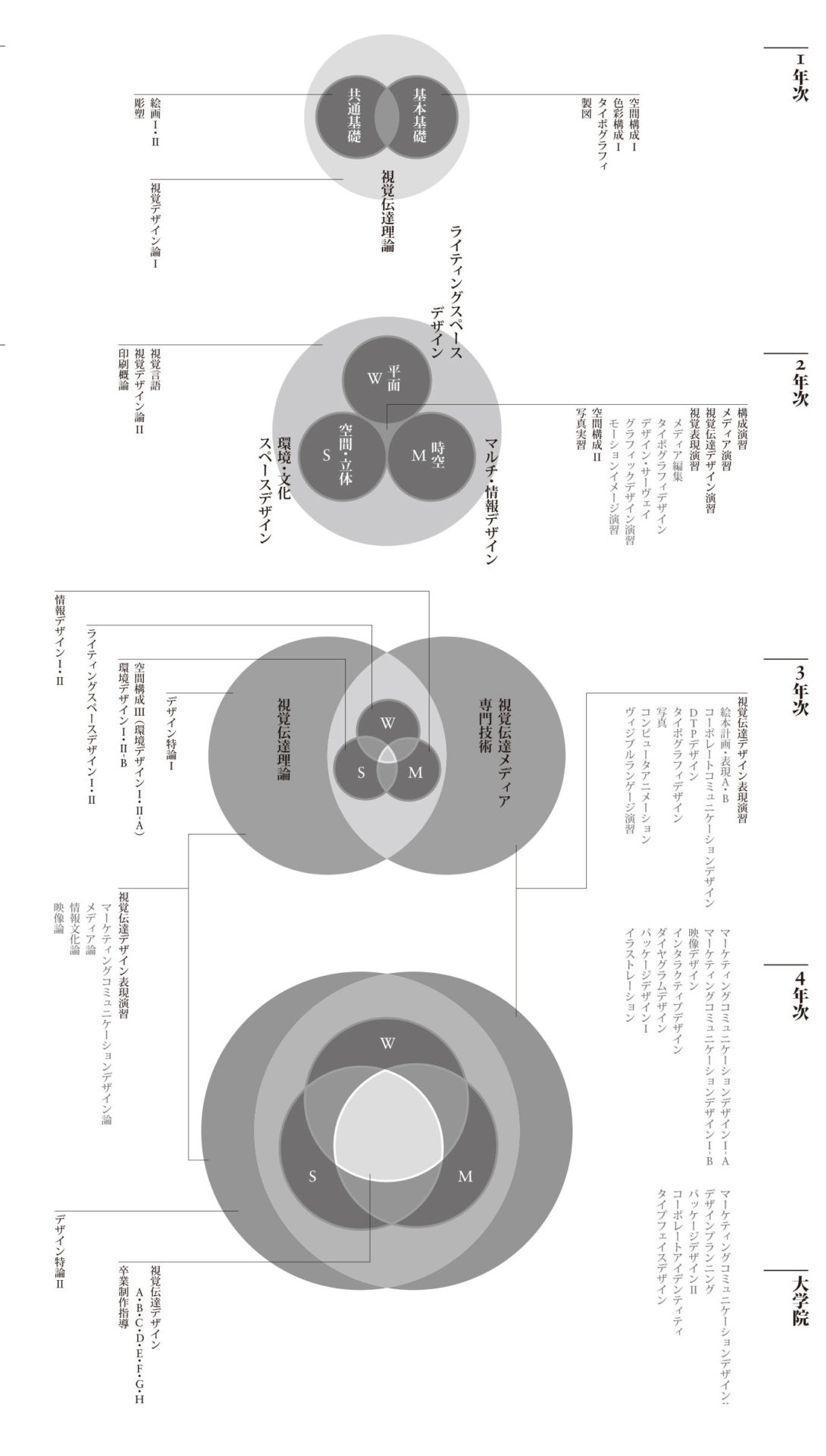 20 01年に行われた視デのカリキュラム総合展をまとめて、入り口から出口までを示すことができました。 20 03年に「ヴィジュアル・コミュニケーション・デザイン・スタディ」を刊行しました。その中には、カリキュラム変更から学生の作品に至るまでが書かれています。