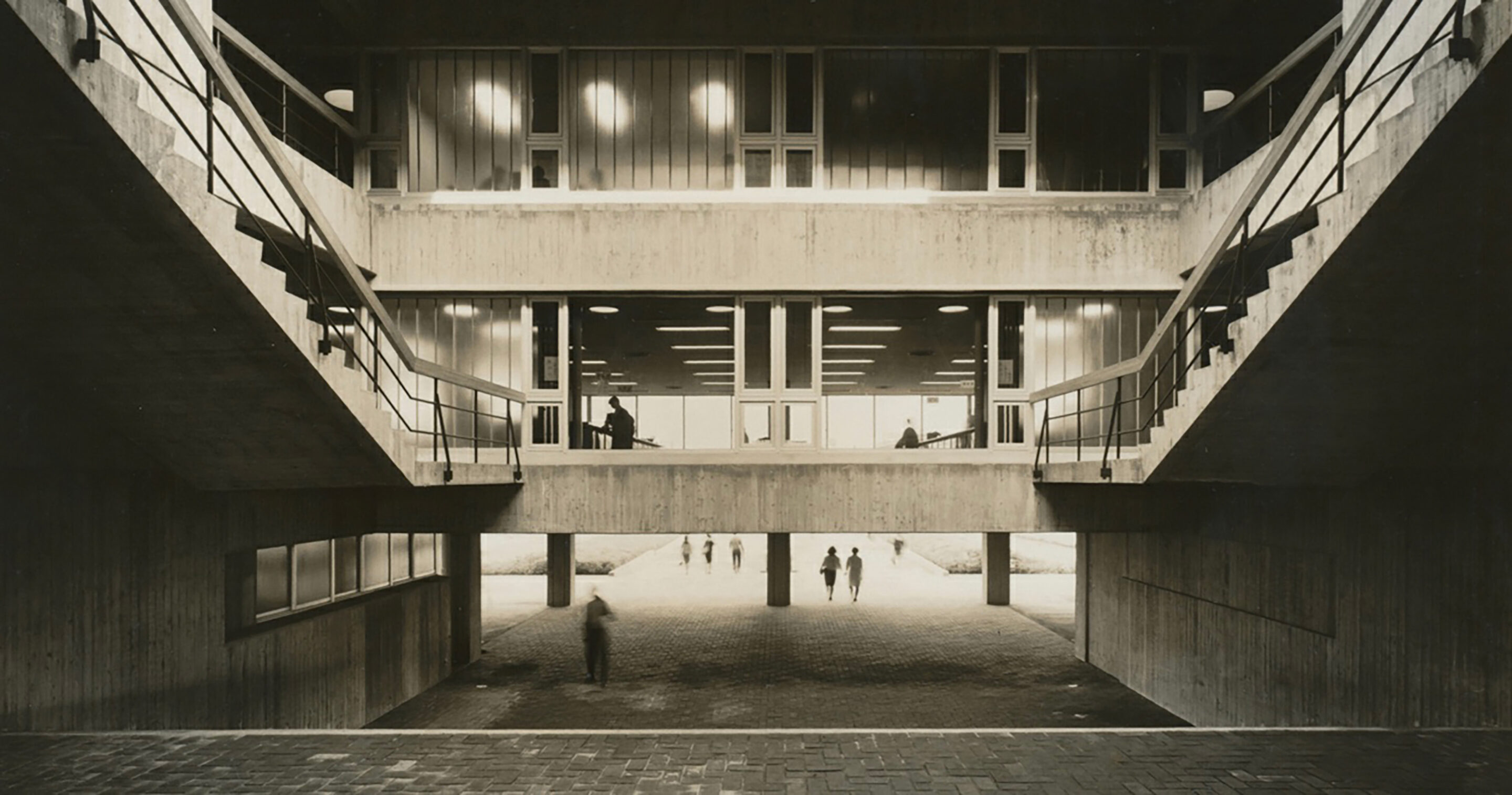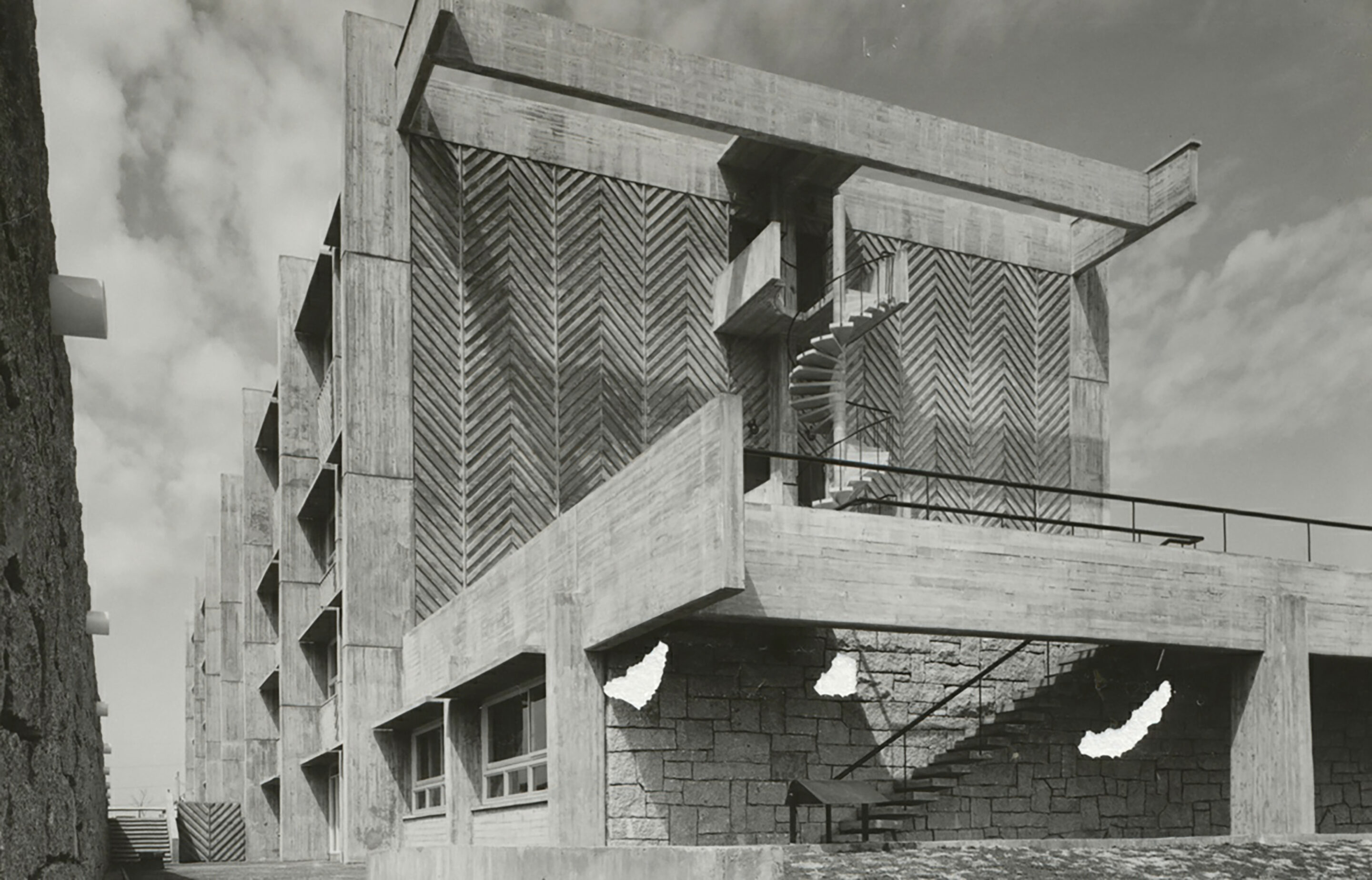 コンクリート打放しというのは、型枠をパカっとはずして、ペンキを塗ったりせずに、そのままの状態にしたものです。それがある意味で迫力がある、あるいはザラザラしているけれども清々しい。20世紀になってヨーロッパのほうから世界に近代建築がひろがりますが、打放しコンクリートは近代建築の1つの様式といってよい。芦原先生はほかの建築家に先がけて、ムサビの校舎をすべてコンクリート打放しでやったわけです。