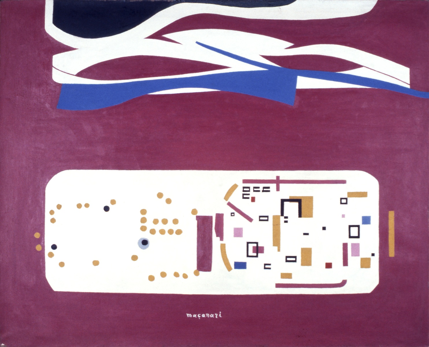 1点挙げるとしたら、村井正誠さんの《Village》ですね。山口長男さんと同時期の抽象の隆盛していた時代の作品。上空から見た街の様相をもとに描かれています。飛行機というものが戦争の時代に発明されて、それは上からの視点をもたらしたわけです。いま生成AIとか、データサイエンスとか、我々の視野が広がっていると思うんですけど、いまという時代ばかりがそうであるわけではなくて、たとえば写真が生まれたりして、昔から新しいものとの出会いはいつもあるわけです。飛行機という上からの視野というものも、絵描きにとっては新しい視角だったわけですね。ぼくらのいちばんの危機は、アニメーションとマンガの衝撃を、絵としてどう掴んで乗り越えていくか。これが我々の課題だと思っています。そういったものも受け止めて乗り越えていかなければならない。ファインアートとそういうものがどう違うのか、そうしたことを考えていく上で、これは興味深い作品だと思っています。