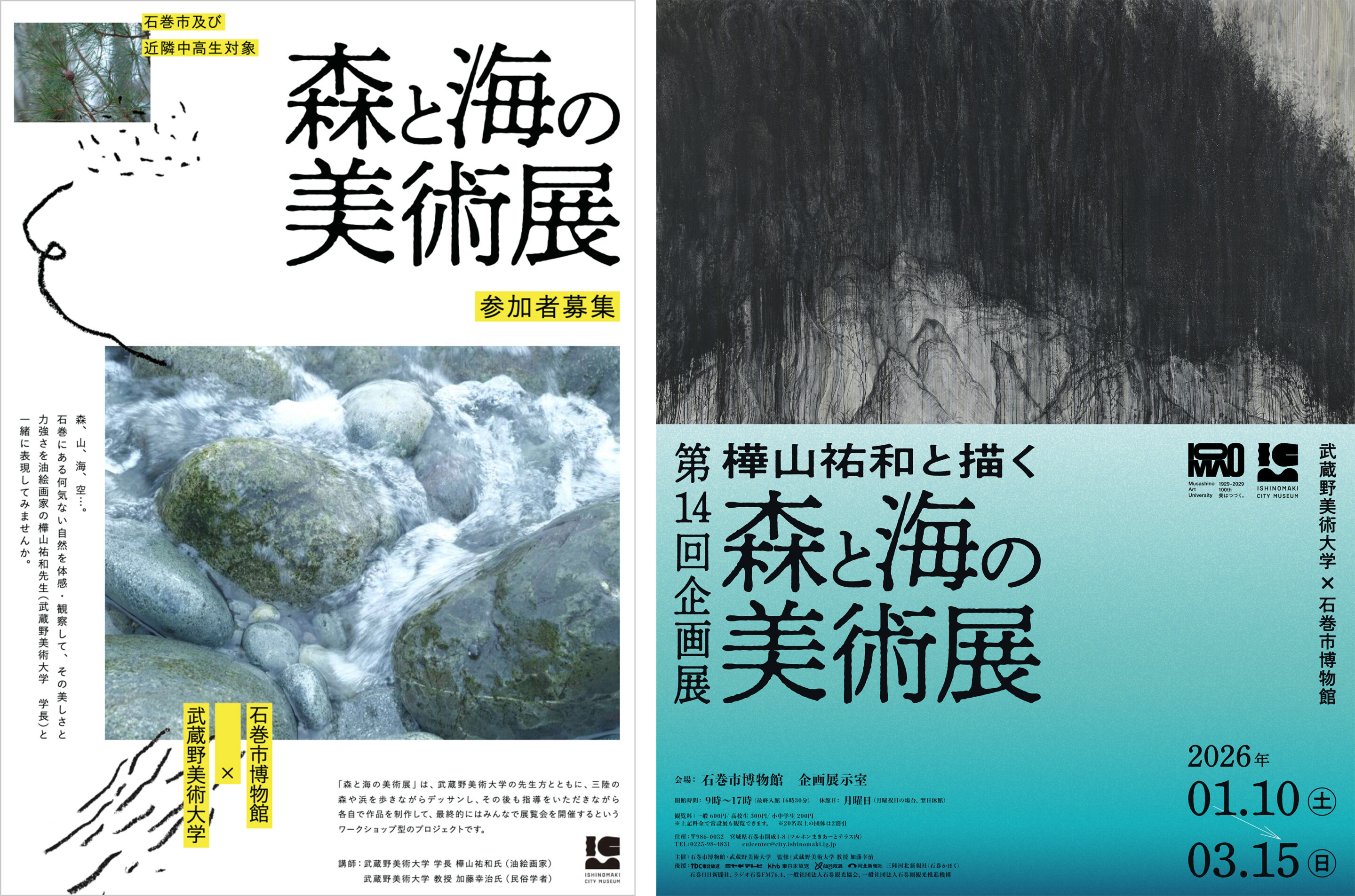 展覧会図録に本学のデザイン系学生が関わったり、関連イベントとしてワークショップを企画した学生は、今回の「森と海の美術展」でも指導役として関わり続けていたりと、この展覧会が石巻市博物館と武蔵野美術大学との関わりの起点となりました。