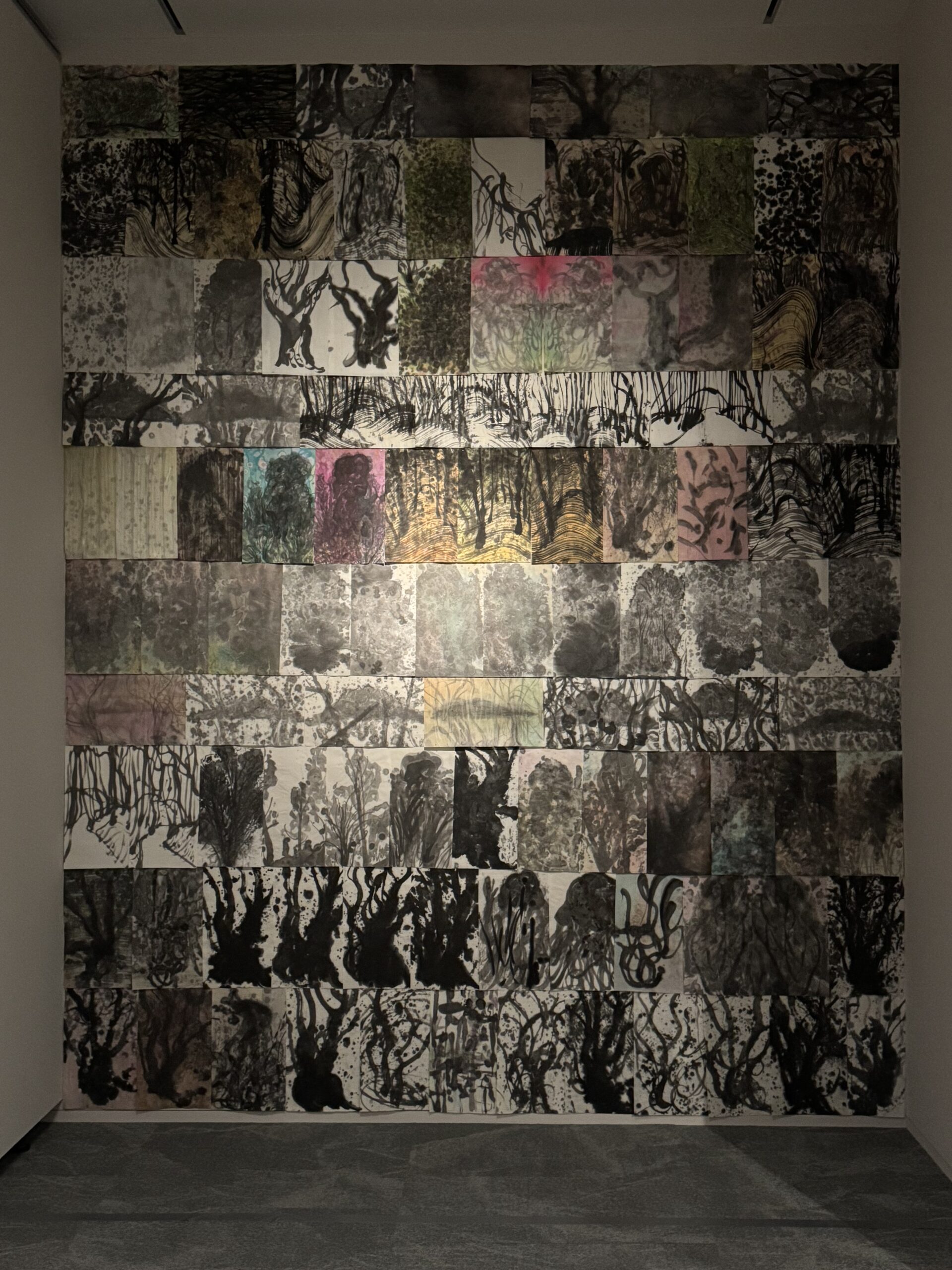 そして和紙に墨だと、短い時間で何枚も描けるんです。展示されているドローイングは1枚に1分もかからないぐらいでどんどん描きました。完成度とか構図だとか、ましてや下書きのようにこれがどういう絵の部分になるかということは一切考えずに、いかに対象と対話するか。もう見なくても体が覚えるぐらいまで現場で描くんです。だからドローイングは作品ではなく、そういう行為の痕跡みたいなものなんですが、でもある意味で絵になるもののエッセンスがあるので、どういうものが現れるんだろうということに興味があるんです。
