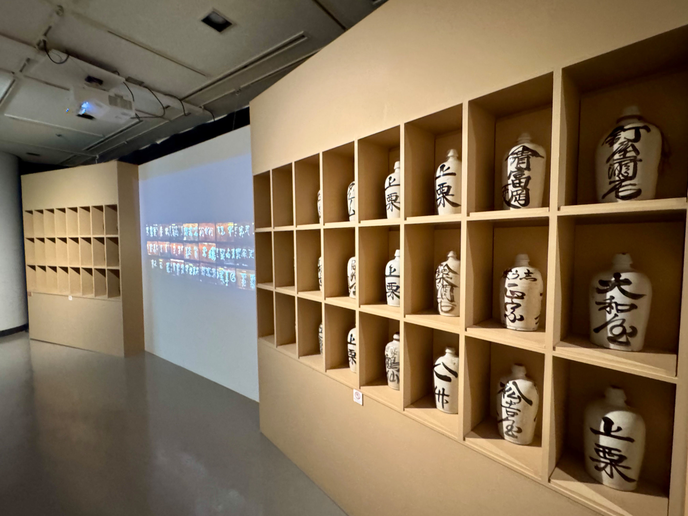 上: 特別展「民 具のミカタ博覧会― 見つけて、 みつめて、 知恵の素」 2階展示より下: 3D計測に基づく貧乏徳利の映像展示より(制作: 大石啓明)