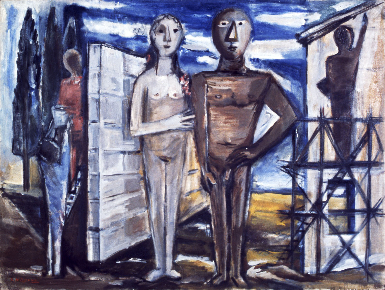 もういちど祥之助の《家造り》に目を向けると、中央に立つマリの右手の指先が祥之助の右腕に軽く触れていることに気がつく。二人はここでも自立しながらつながっているのだ。