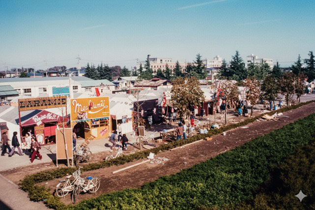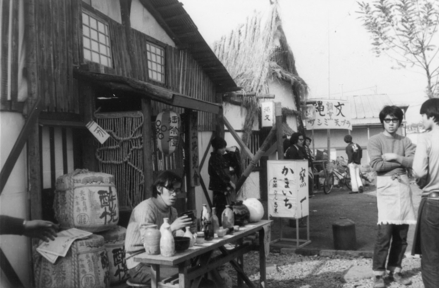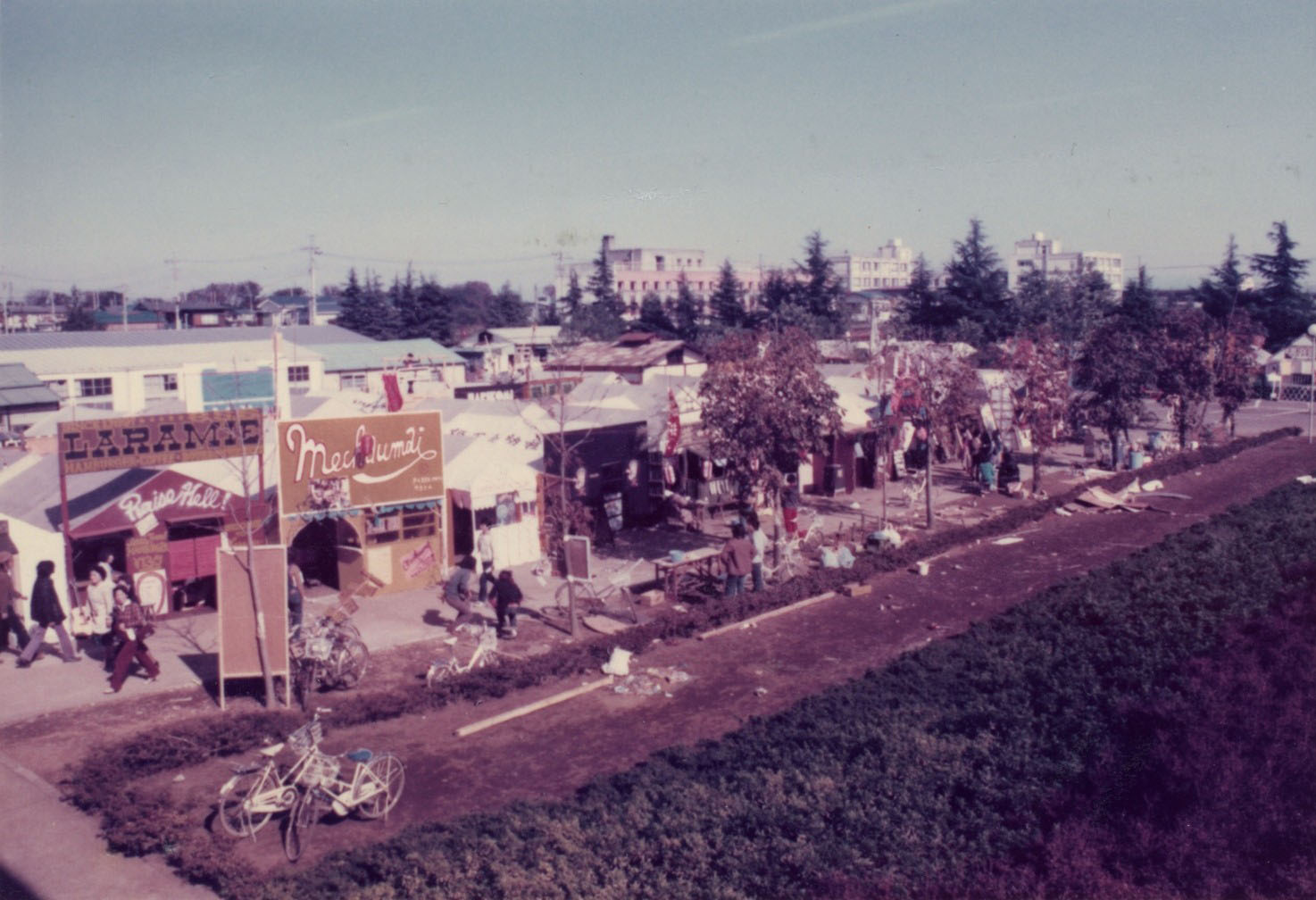 現在10号館が建ってる場所。10号館ができる前は石彫場やプレハブ校舎があり、ここに模擬店が乱立してたそう。