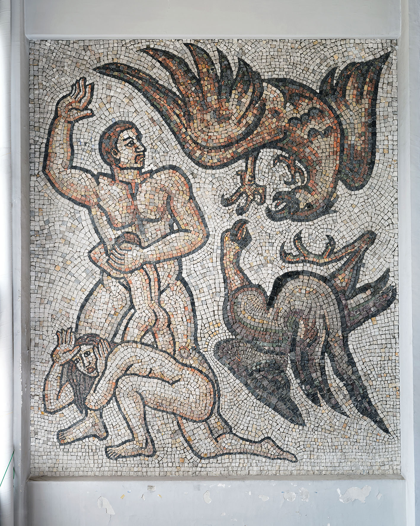 《モザイコの戦い》鷹の台校への移設前、吉祥寺校にて(2023年12月、撮影:手羽イチロウ、画像提供:武蔵野美術大学 大学史史料室)