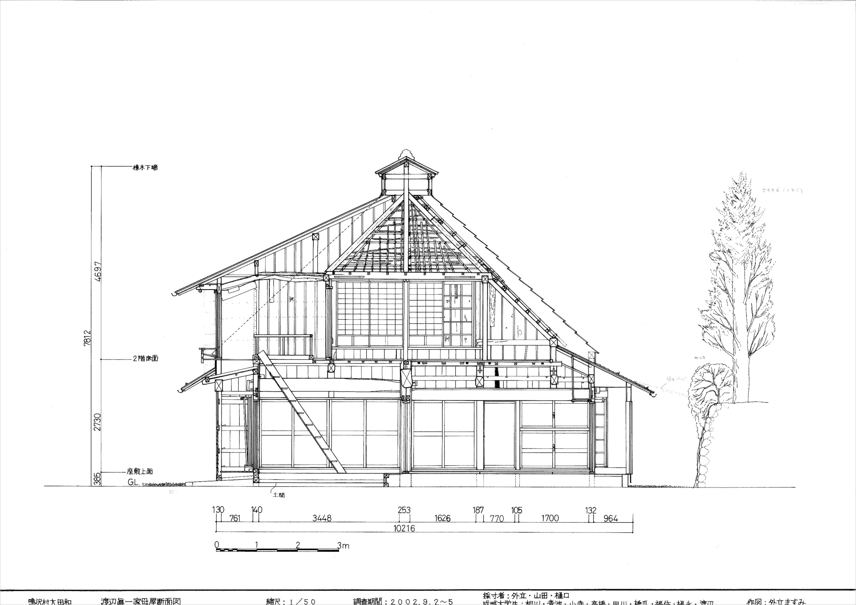 民家実測図「渡辺眞一家母屋」山梨県南都留郡鳴沢村 2002年