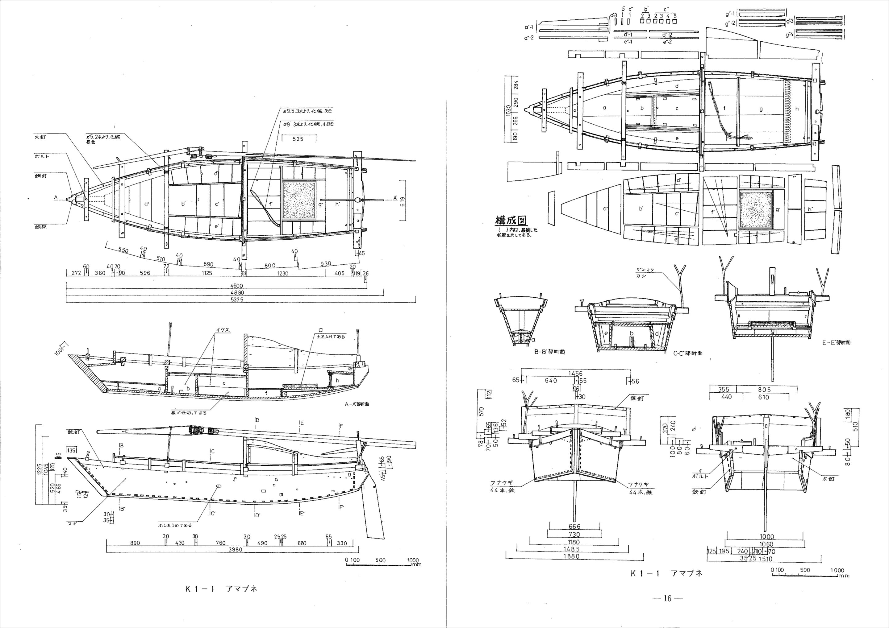 私自身も大学院修了後は博物館に勤務することになった。11年間にわたり千葉県の県立博物館3館に勤務したが、その大半は千葉県立安房博物館註3での勤務であった。大学院在学中に、収蔵資料の重要有形民俗文化財指定を目指していた安房博物館での実測図作成のアルバイトを始め、アルバイトを続けながら千葉県の学芸員採用試験を受けることになった。アルバイトとして最初に取り組んだのがアマブネ(海士船)の実測で、完成した図面は学芸課職員を驚かせることになった。
