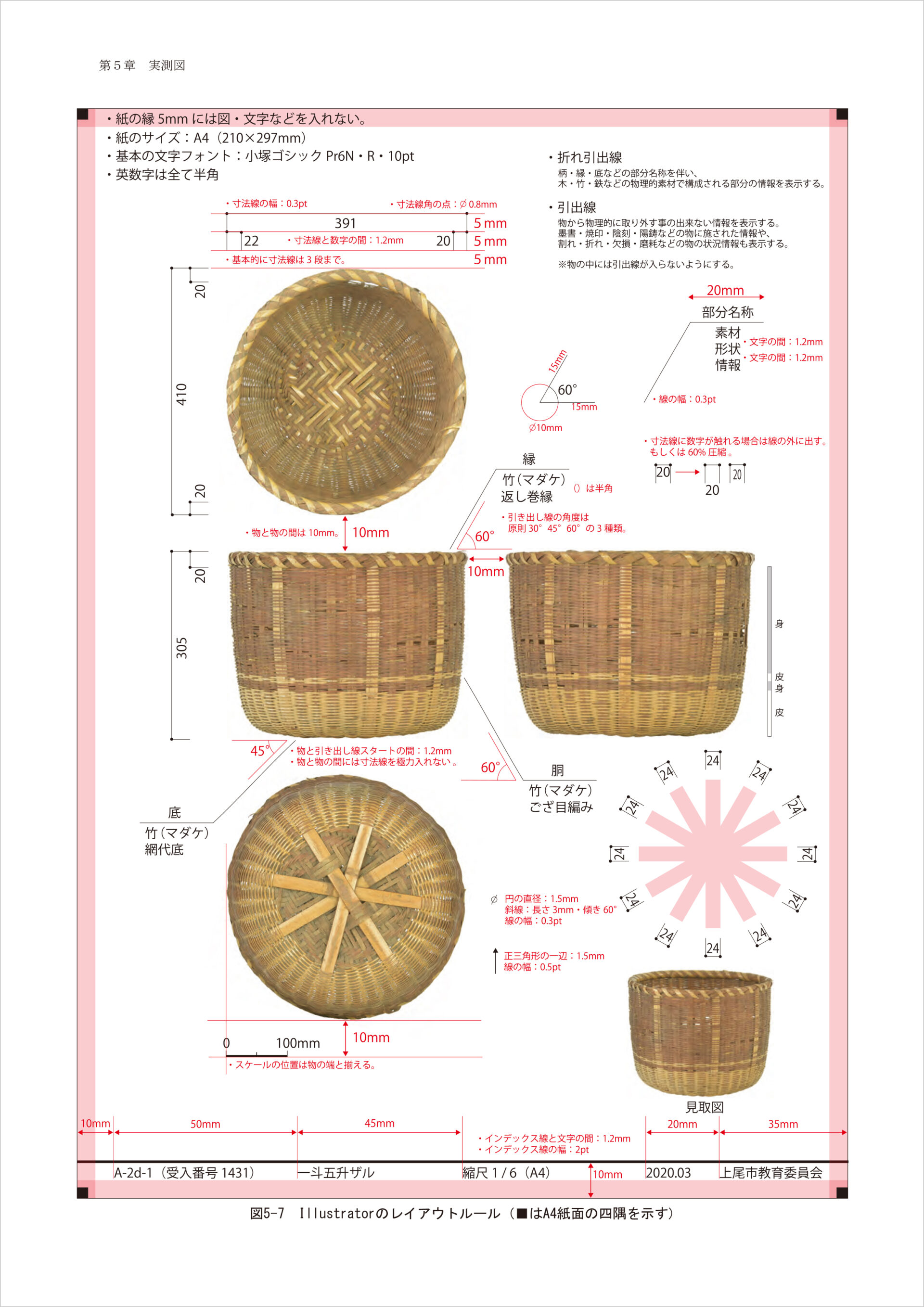こうした試みを経て「房総半島の漁撈用具(2144点)」は1987年に重要有形民俗文化財に指定された。当時の文化庁の担当者は前述の木下忠主任調査官であった。木下先生は本務をとおして各地の民具研究者間の連携を試みていた方で、日本民具学会註4の設立、『日本民俗文化体系 技術と民俗(上・下)』(小学館、1985)の編集、『民具調査ハンドブック』『民具研究ハンドブック』(雄山閣出版、1985)の編集を介して民具実測の意義と必要性を啓蒙し、文化庁の重要有形民俗文化財の指定要件として実測図の作成を定めていくことに尽力していた。文化財行政における民具実測図の作成は、文化庁調査官たちの現地での検収作業と上記の啓蒙文献の刊行とにより定着していくことになった。民具の実測作業は、日常卑近の生活用具を民俗資料として標本化するための試みとして評価されたが、作図者を養成し実務にあたってもらうためには時間と予算が必要となった。実測作業が各地の自治体等で受容されるまでの過程では、私たちは「『アイヌの民具』の残党」と揶揄されることもあった。