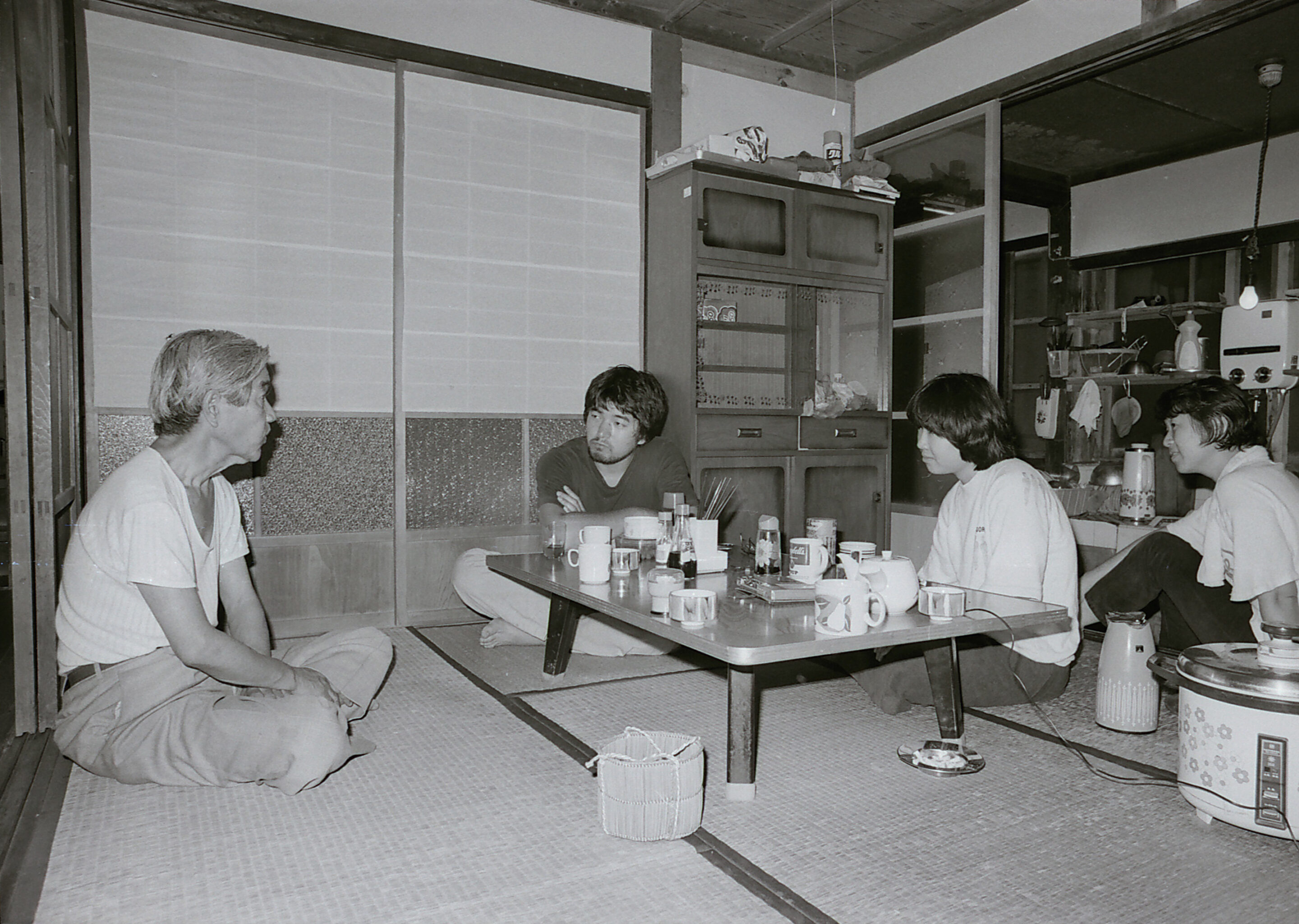 志摩民俗資料館設立準備作業の合間に阿児町賢島の宿舎で宮本常一先生の指導を受ける筆者と仲間たち 1980年(撮影:谷沢 明)