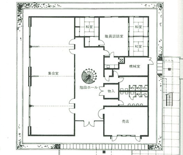 真ん中に螺旋階段があり、第1食堂内から直接1階に降りられたんです。