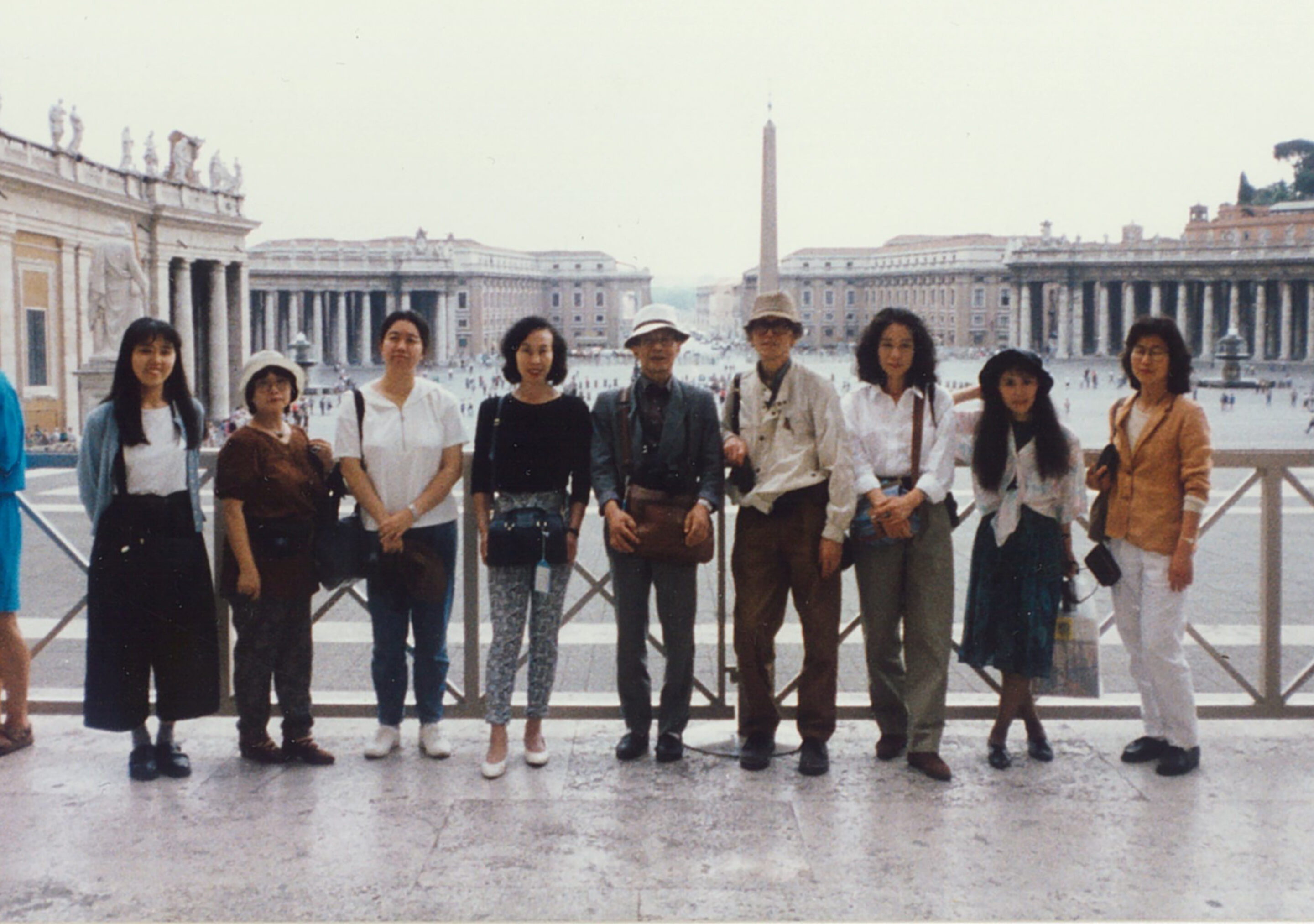 サン・マルコ広場にて。右から4番目が毛利先生、3番目が内田。左端が庄司尚子さん、その隣が毛利夫人やすみさん(写真提供:内田あぐり)