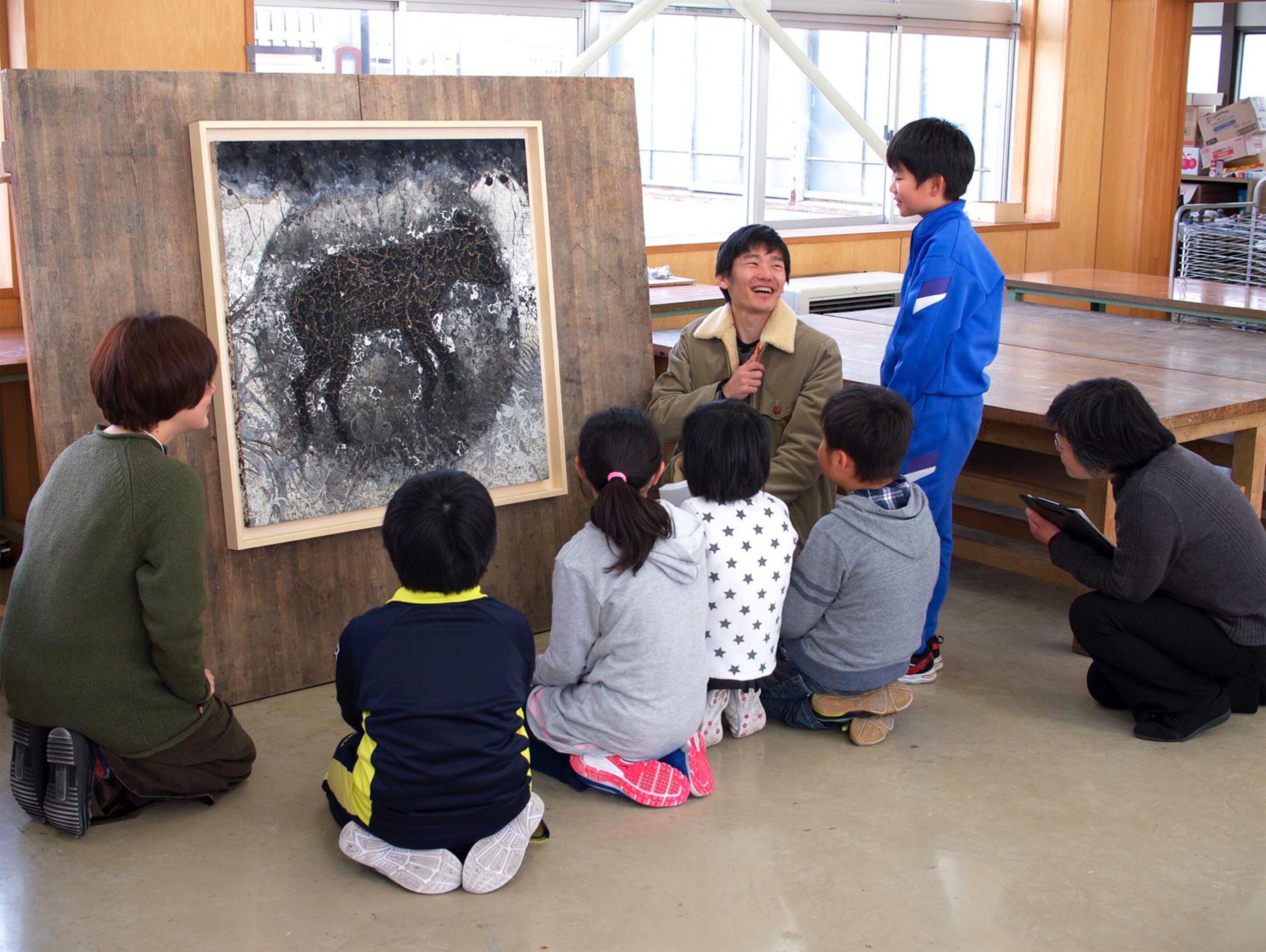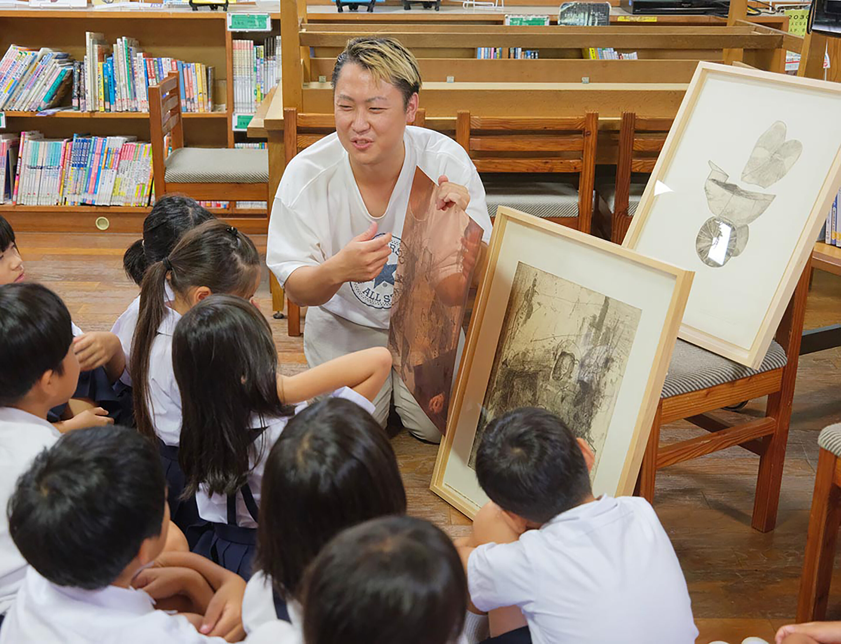 彼は「中学生は教科書でしか作品を見たことがない。彼らに実物の作品を見せたい」と言った。